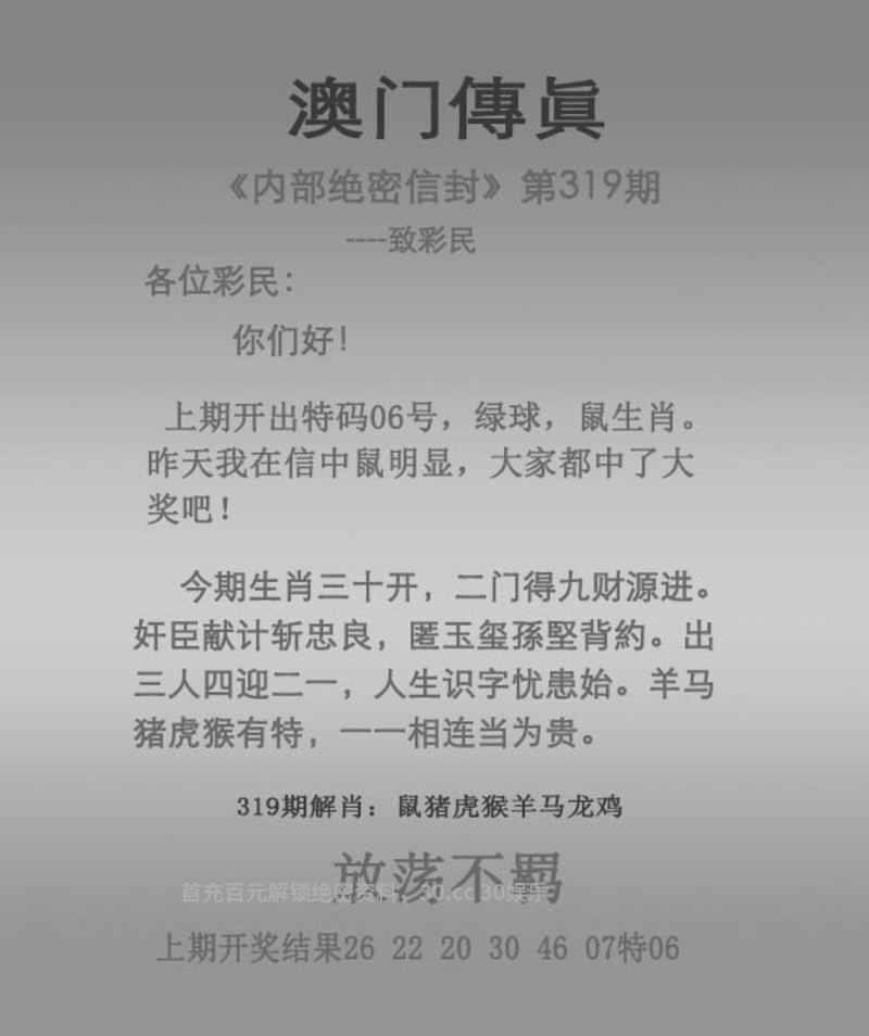 | 318期:绝杀三肖【羊猴狗】开:鼠06中 |